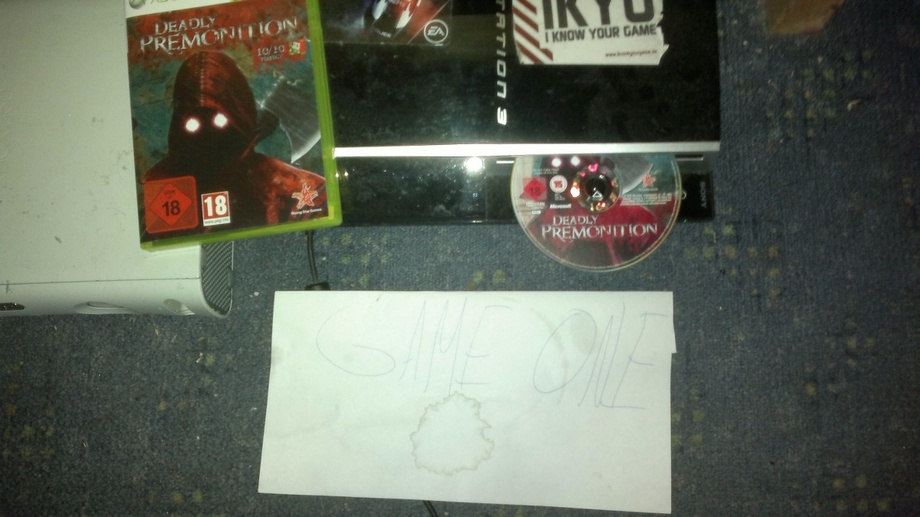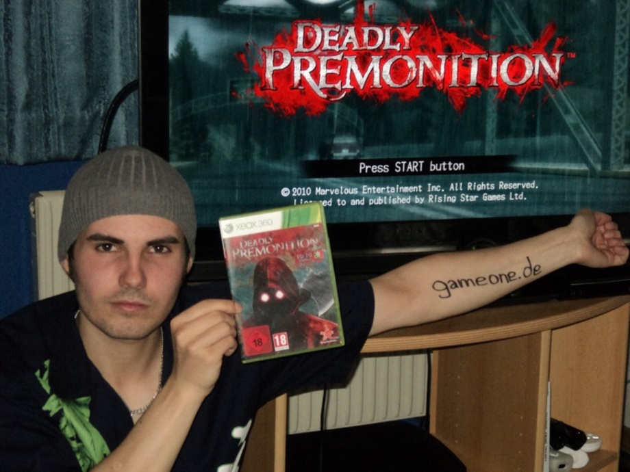Denkt dran: Wir hätten gerne Fotos von euch und eurer Version des Spiels. Schickt das Bild einfach an chris(at)gameone.de – wir leiten das an Swery sowie die anderen Entwickler weiter und basteln eine tolle Galerie daraus. Solltet ihr keine Version haben, dann werft doch ein Kunstwerk, welches “Deadly Premonition” huldigt in die Runde.